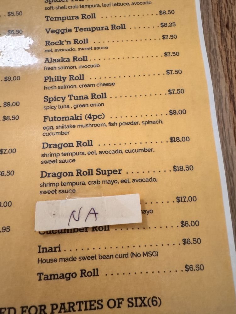 Feeds - people. California roll, Alaska roll, phili roll, tempura roll, and spicy tuna roll with party plate
